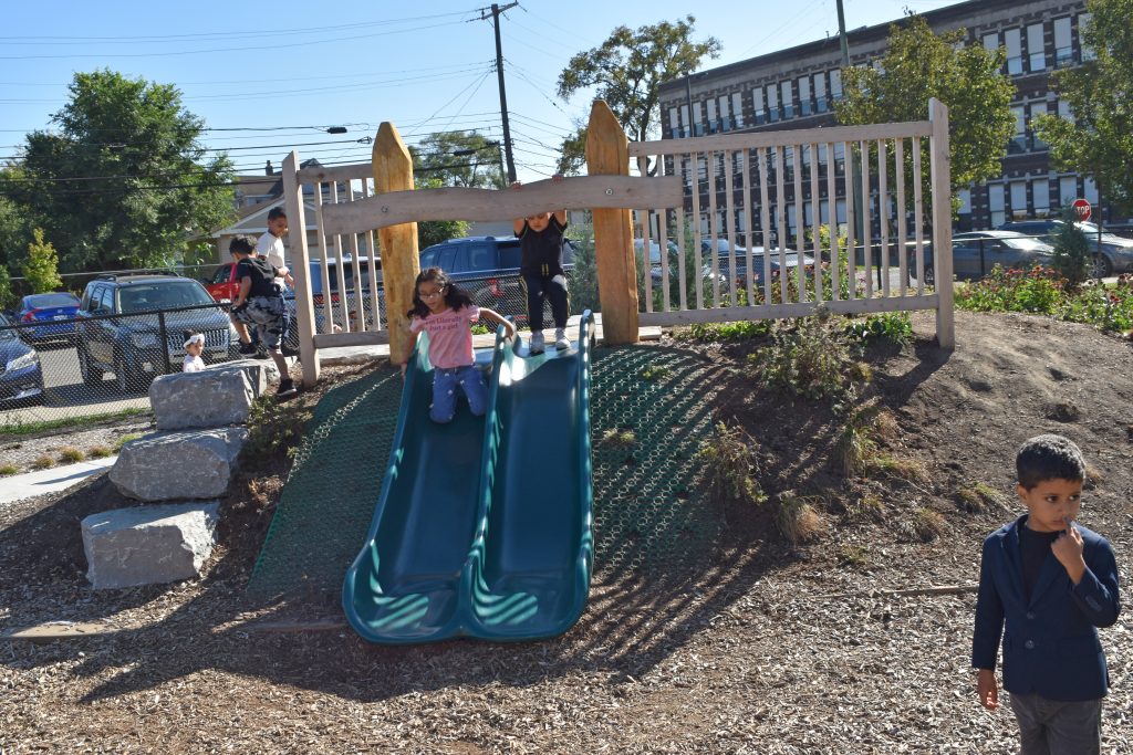 Last year, the campus also added another rain garden and planted a prairie area, trees and bushes. These features joined existing improvements including vegetable and pollinator gardens and the outdoor learning spaces already on the campus.